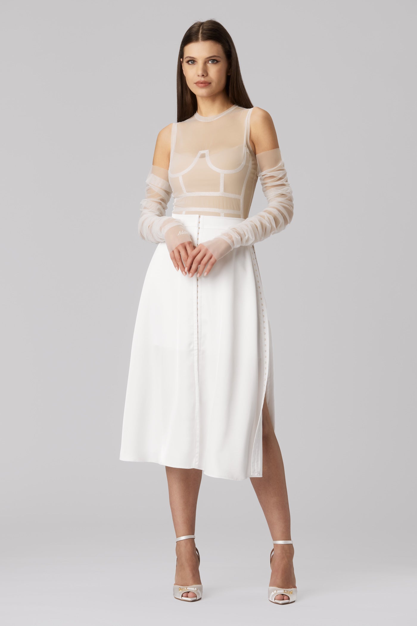 A celebration of the feminine silhouette through signature MURMUR pieces. Skirts, dresses, and iconic corsets seen on stage and red carpets, alongside statement tees, second-skin leggings, and entirely new creations. With soft hues and refined cuts, the collection moves effortlessly between day and evening, cocktail and bridal, tracing a sensual line between the familiar and the unexpected.